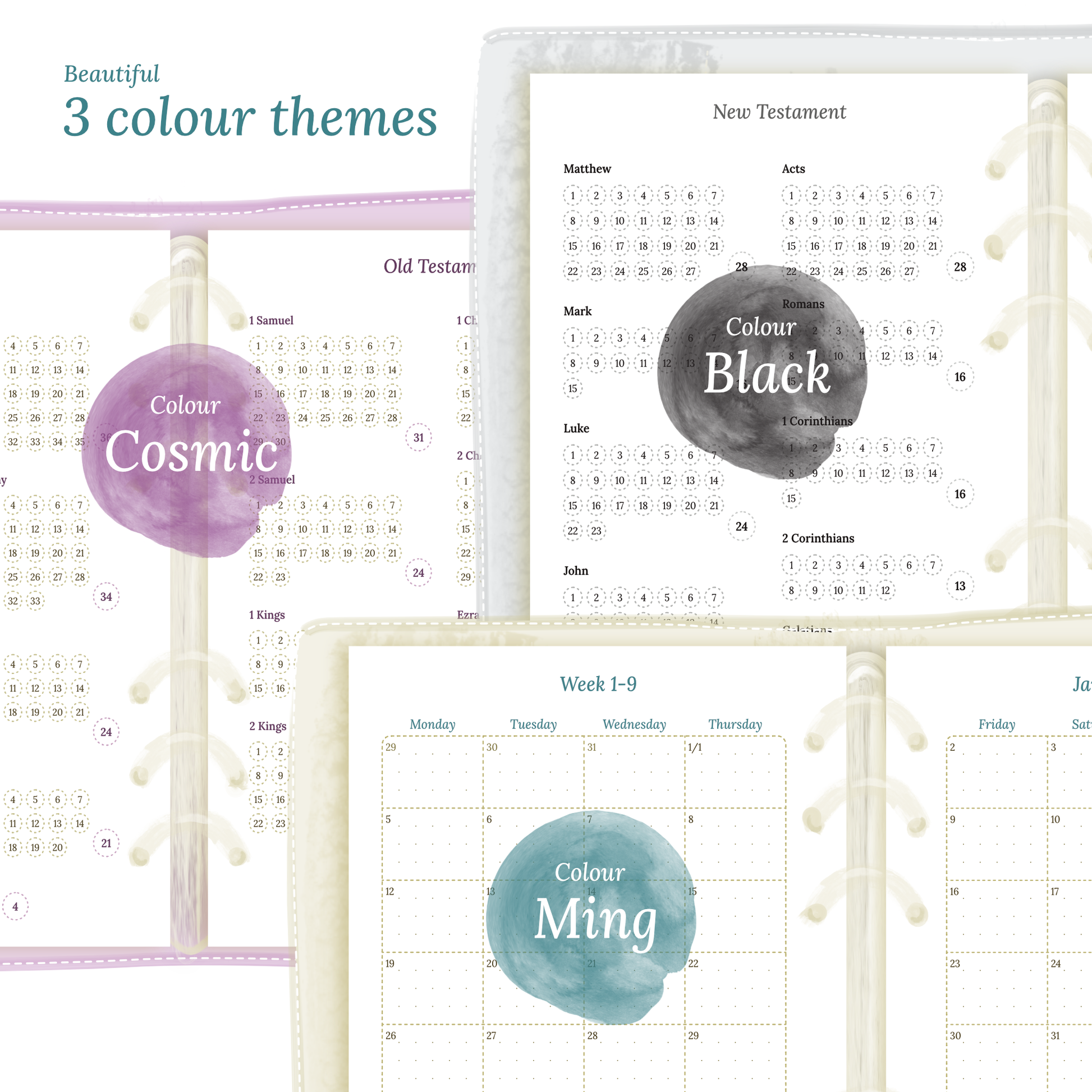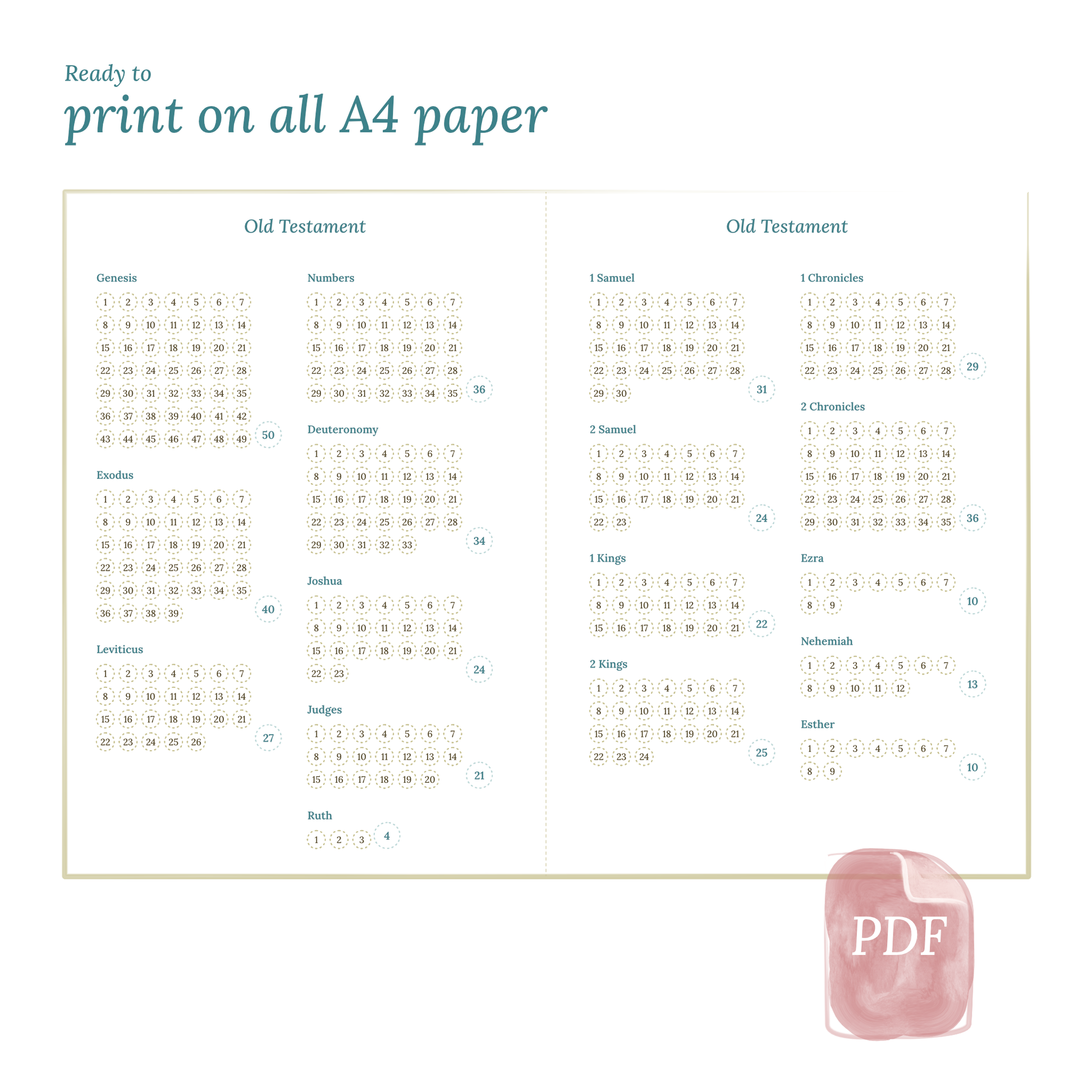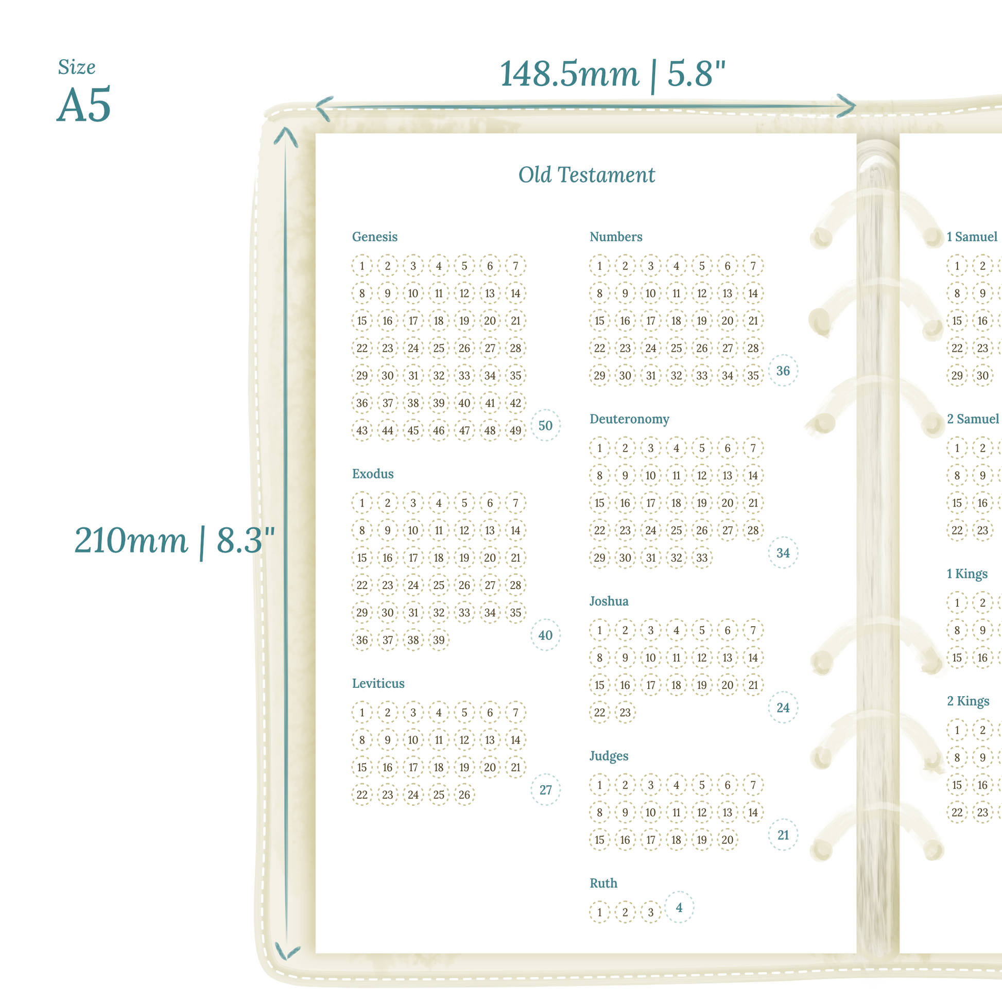 Keep your spiritual journey on track with this Bible reading tracker designed to fit seamlessly into your A5 size planner. Empower yourself to grow daily in faith.
