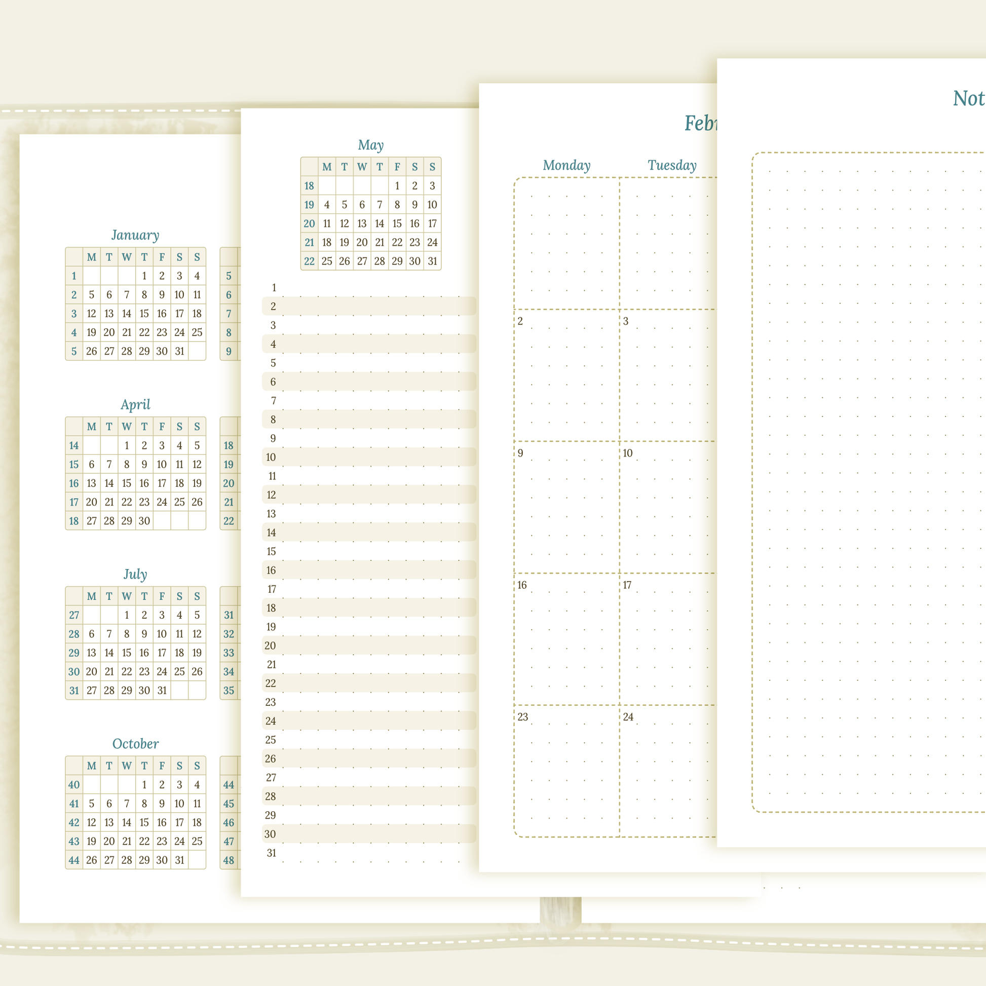 Choose from 3 different, carefully designed color themes to match your desired planner style.