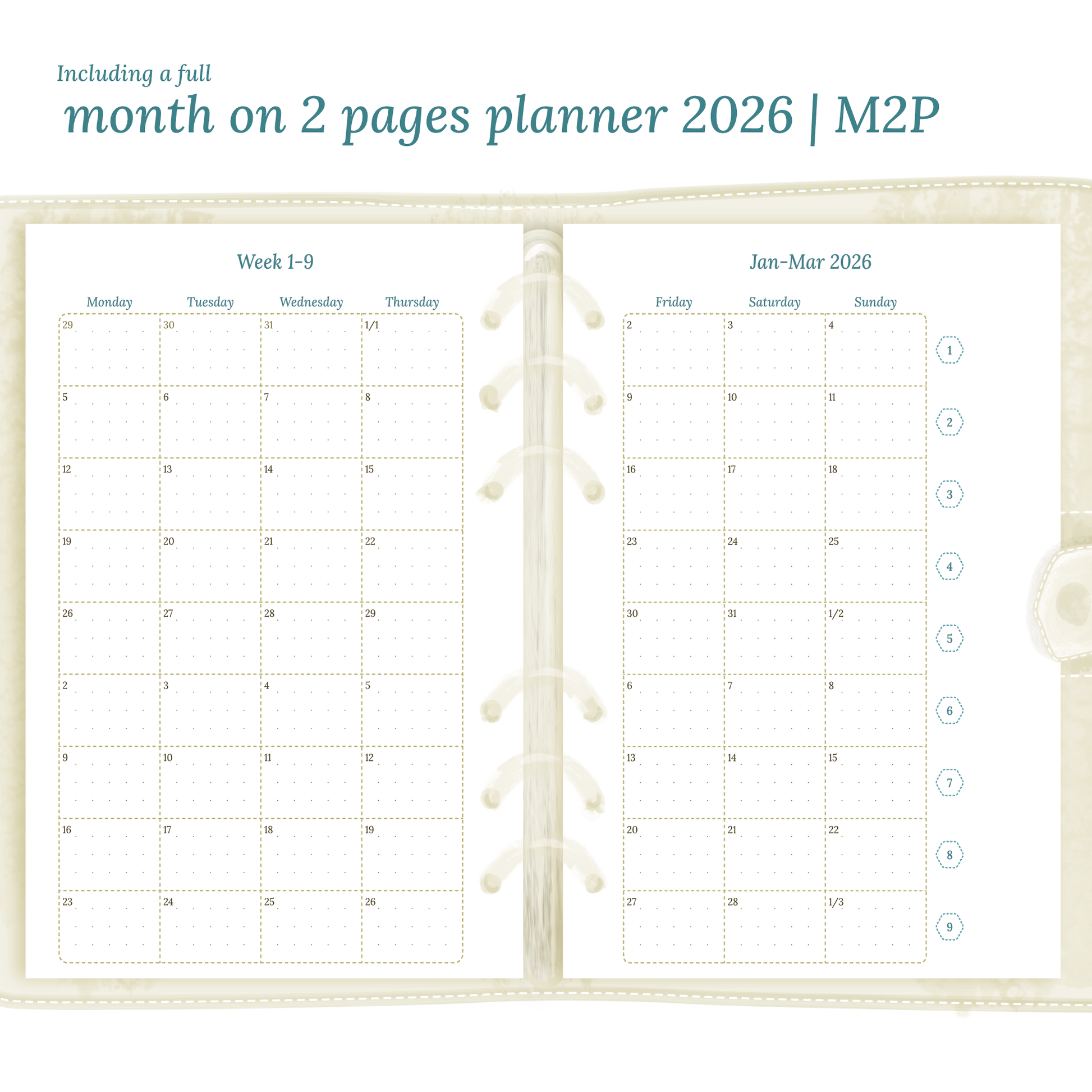 - Including a full month on 2 pages planner | M2P 2026