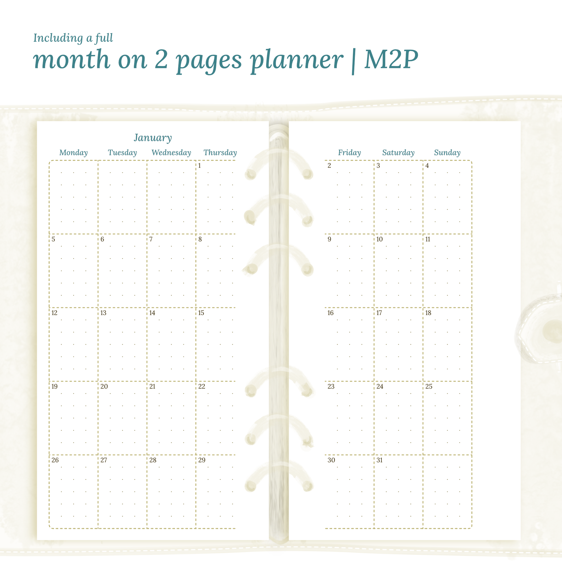 - Including a full month on 2 pages planner | M2P 2026