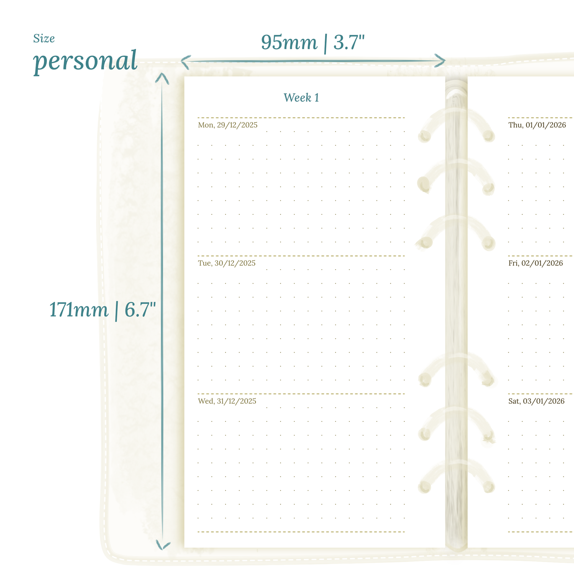 Finally a week on 2 pages planner in personal size that fits your needs. More space and more beautiful pages just for you.